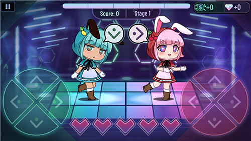在这个小游戏中,Lemo和Yuni将以一组舞步提示接下来的输入方向(左右上下)。玩家有5次机会,每次失误会扣除一次机会,扣完则游戏结束。Easy难度下每得1分可获得3倍Bits奖励,每10分可获得一个Gems;Hard难度下每得1分可获得4倍Bits,每5分可获得一个Gems。
