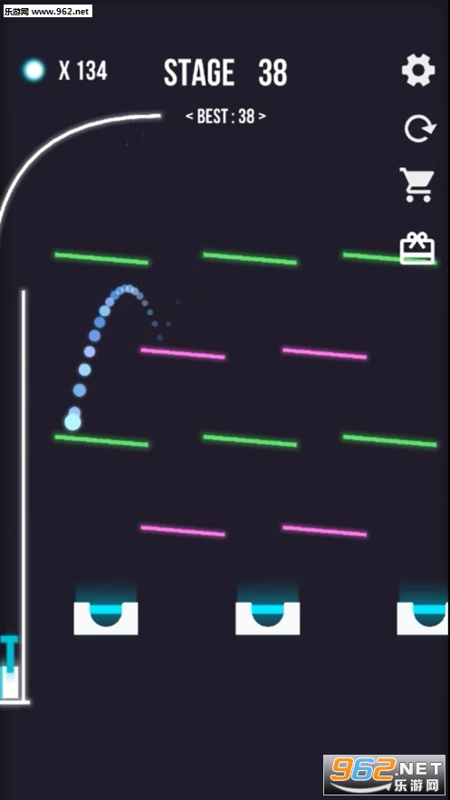 3、这款游戏需要玩家很好的控制自己发射小球的力度,完美的让自己的小球到达指定的位置。