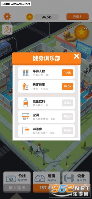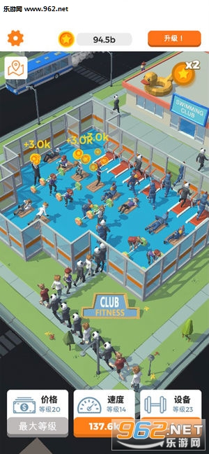《游泳健身了解一下安卓版》是一款健身模拟经营游戏,你经营着一家健身房,你要吸引客人来你的健身房健身,客人越多,锻炼的越快你的金币就越多,这样你在可以去扩建你的健身房,购买更多的健身器材。