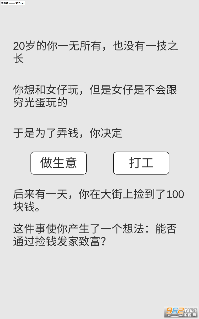 总体来说是一款玩法非常有趣的文字休闲类的游戏,玩法非常的独特具有新意,开头的那些sao话~~~~先不去管它,开始后玩家要做的就是在地图中去点击不同的地区去捡取更多的东西然后就卖掉,获得的金钱可以用来后续的投资活动,而且游戏中的各种sao话还是很魔性的,喜欢的亲们赶紧下载吧。
