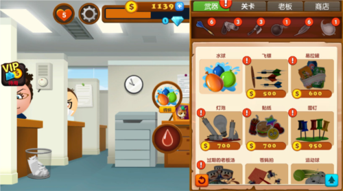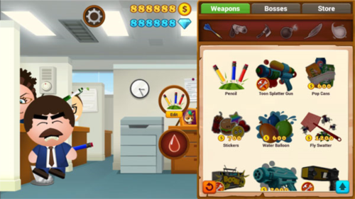 踢爆老板4是一款非常有趣的休闲解压游戏,游戏中并没有设置具体的任务目标,你能够完全释放内心的不快。在踢爆老板4里,玩家能够利用多种道具去攻击老板,像水球、扑克牌、金钱雨、网球等都可供选择,只需不断点击屏幕,就能将这些道具投向可恶的老板。