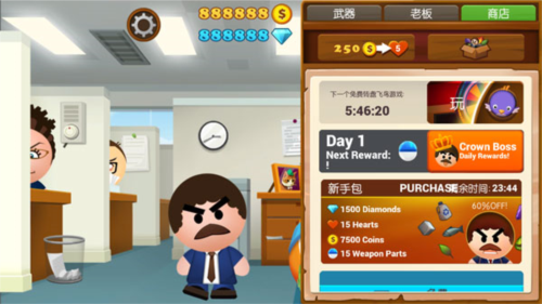 1、游戏的玩法简单有趣,使用各种武器暴打老板,发泄平时积攒的怨气!