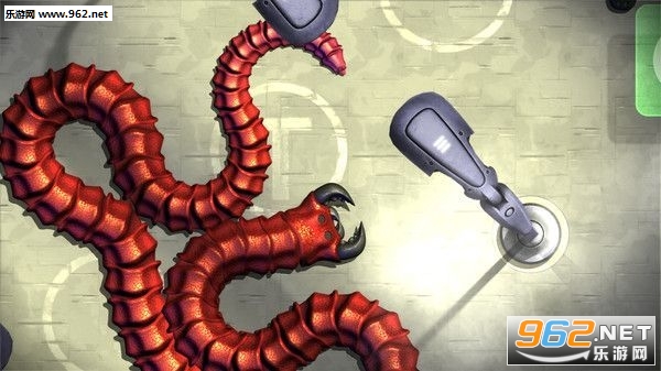3.滑动屏幕,即可让蜈蚣移动;吃到一定长度,按住加速按钮,可让蚯蚓加速前进。