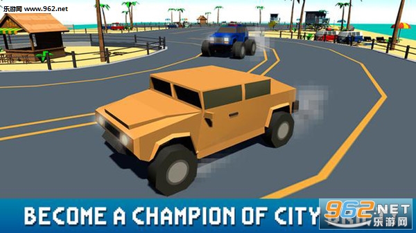 2、在你的像素汽车漂移通过立方体城市,探索它的街区和赚取点买一辆新车!试着解锁所有的车辆,成为方块世界里 好的赛车手!