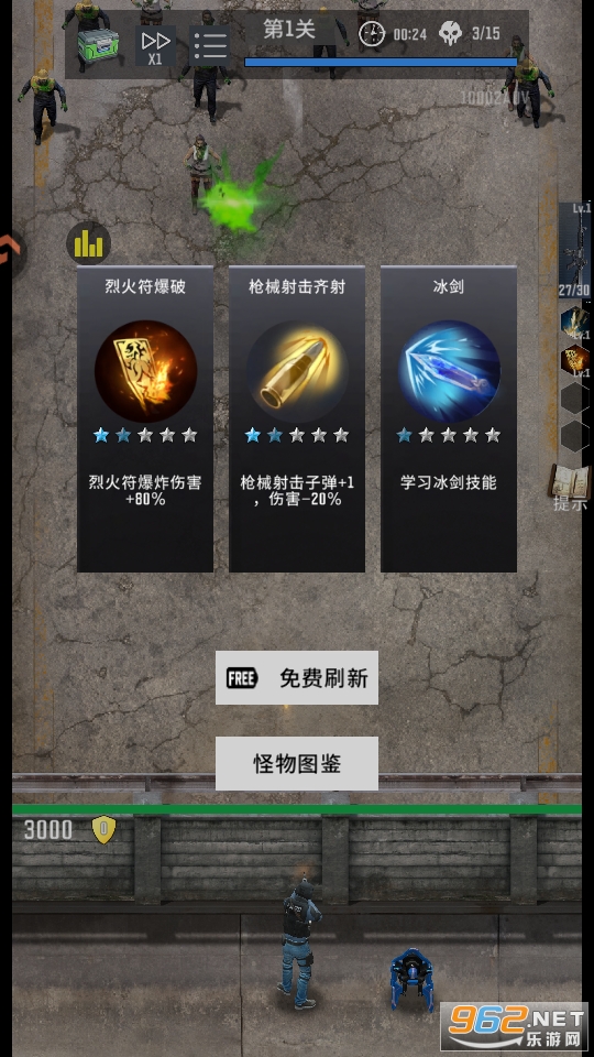 策略深度:需平衡即时射击与塔防布局,根据僵尸特性调整技能组合,如针对高速僵尸强化陷阱效率。