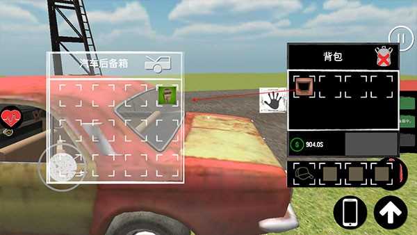 5、然后打开房门,点击后备箱,再次点击背包”将东西放入。