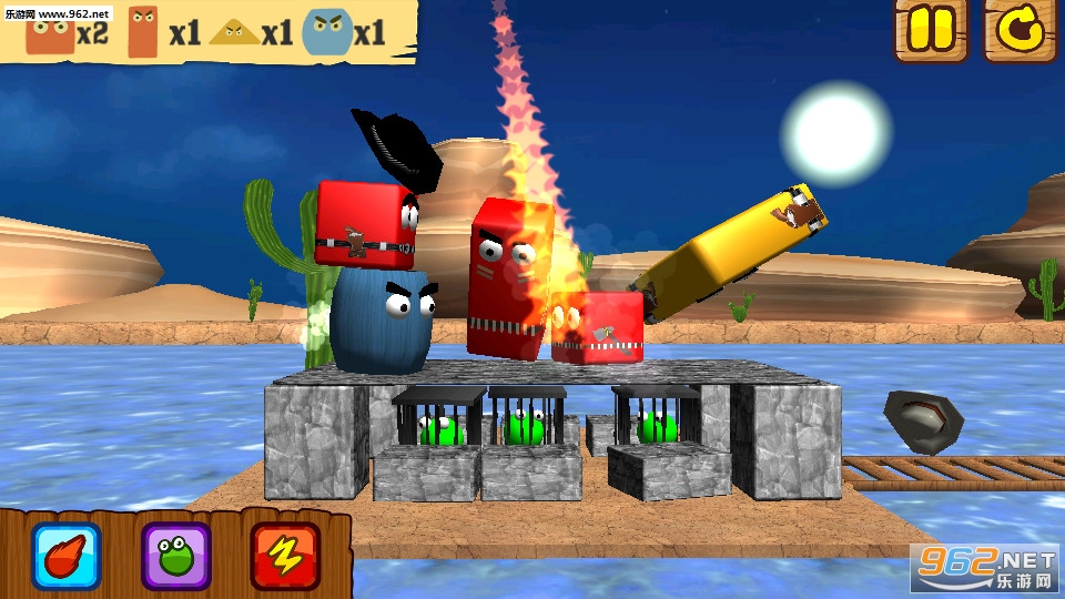 2、把它们推到水里面。但是要小心哦,因为敌人很聪明,会保护自己。