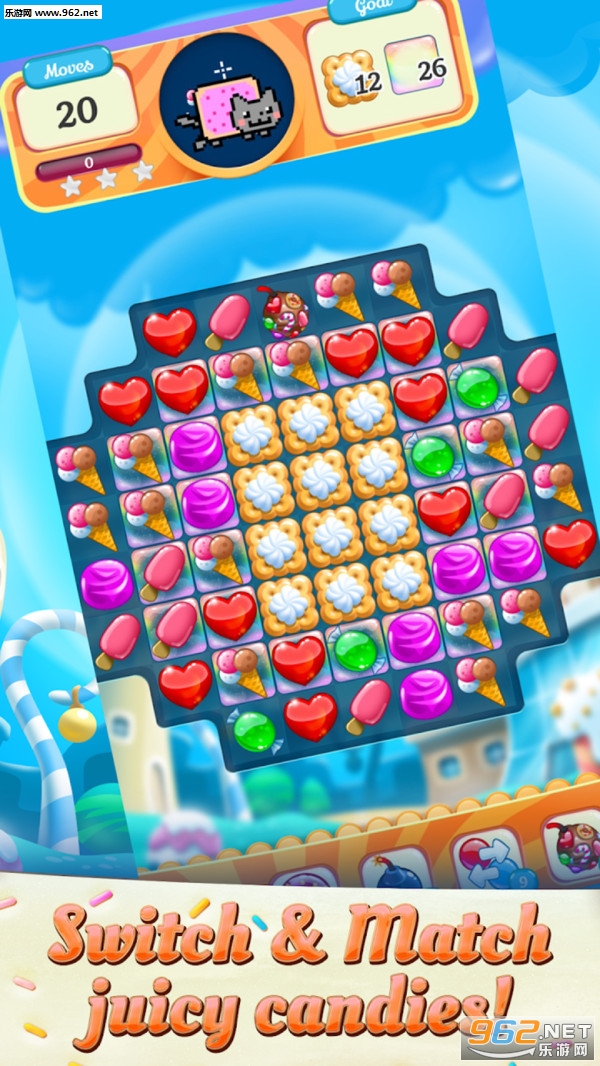 彩虹猫:糖果比赛是一款有趣的三消类手游,游戏中玩家需要通过不断的消除糖果来吃到更多的食物,不断挑战,尝试获得更高的积分,还等什么,感兴趣的话就快来下载体验吧!
