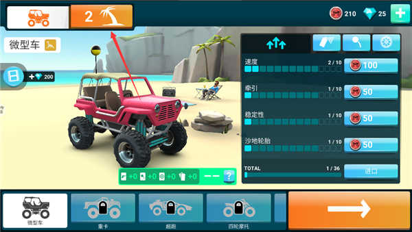 2、在屏幕右侧区域,你可以查看并提升赛车的各项属性,例如速度、耐久度等。