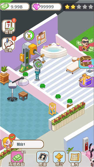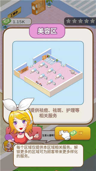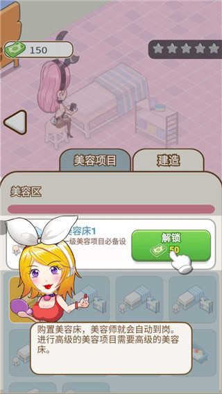 6、完成上述步骤后,您的美容院便可正式营业啦!记得不断解锁新区域,这样不仅能吸引更多顾客,还能显著提升收入哦。
