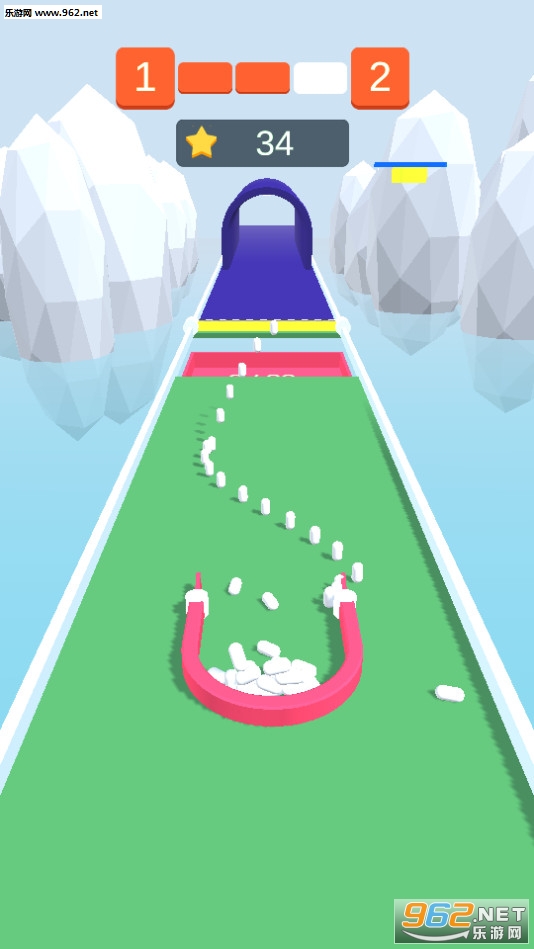 3、没有过高的难度,整个玩法有点类似于跑酷游戏,到后期U形槽移动会加速。