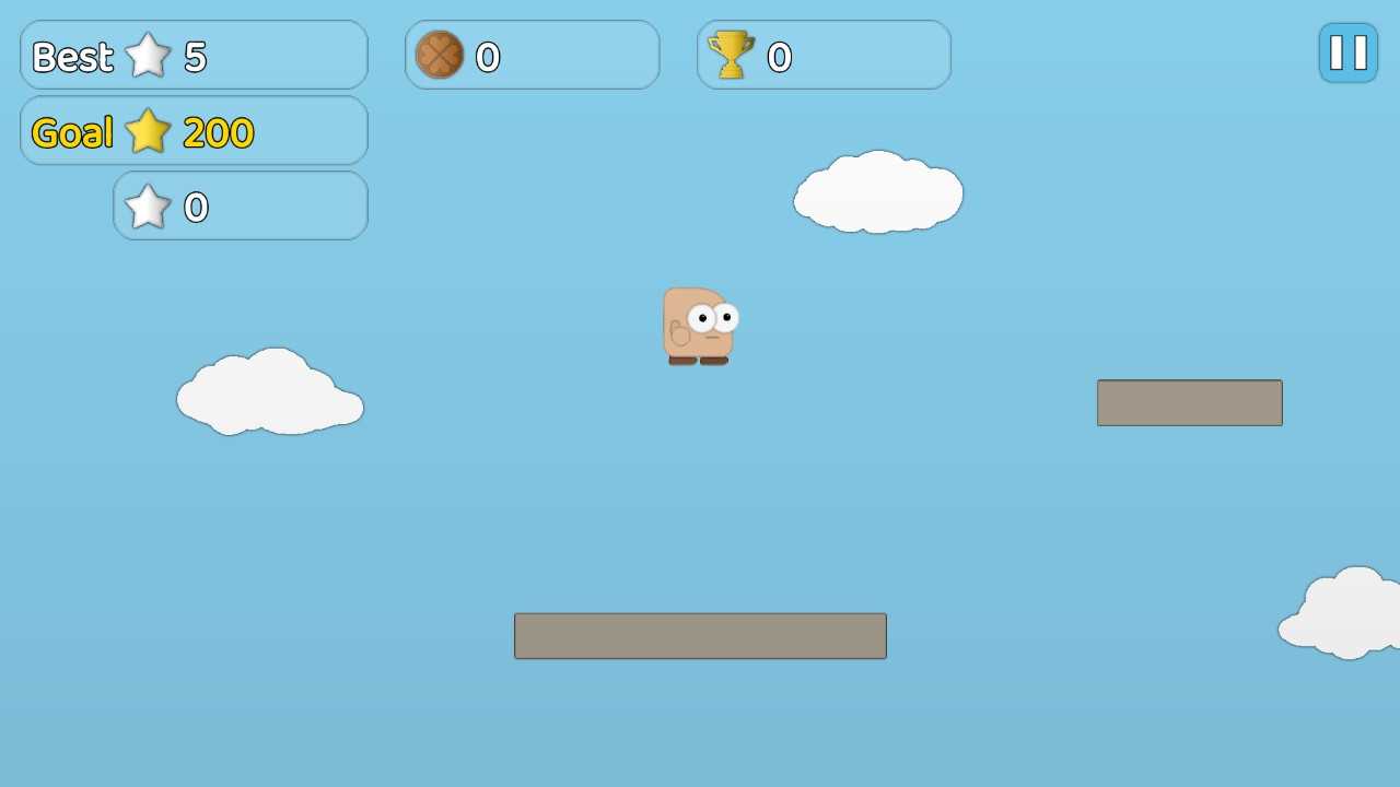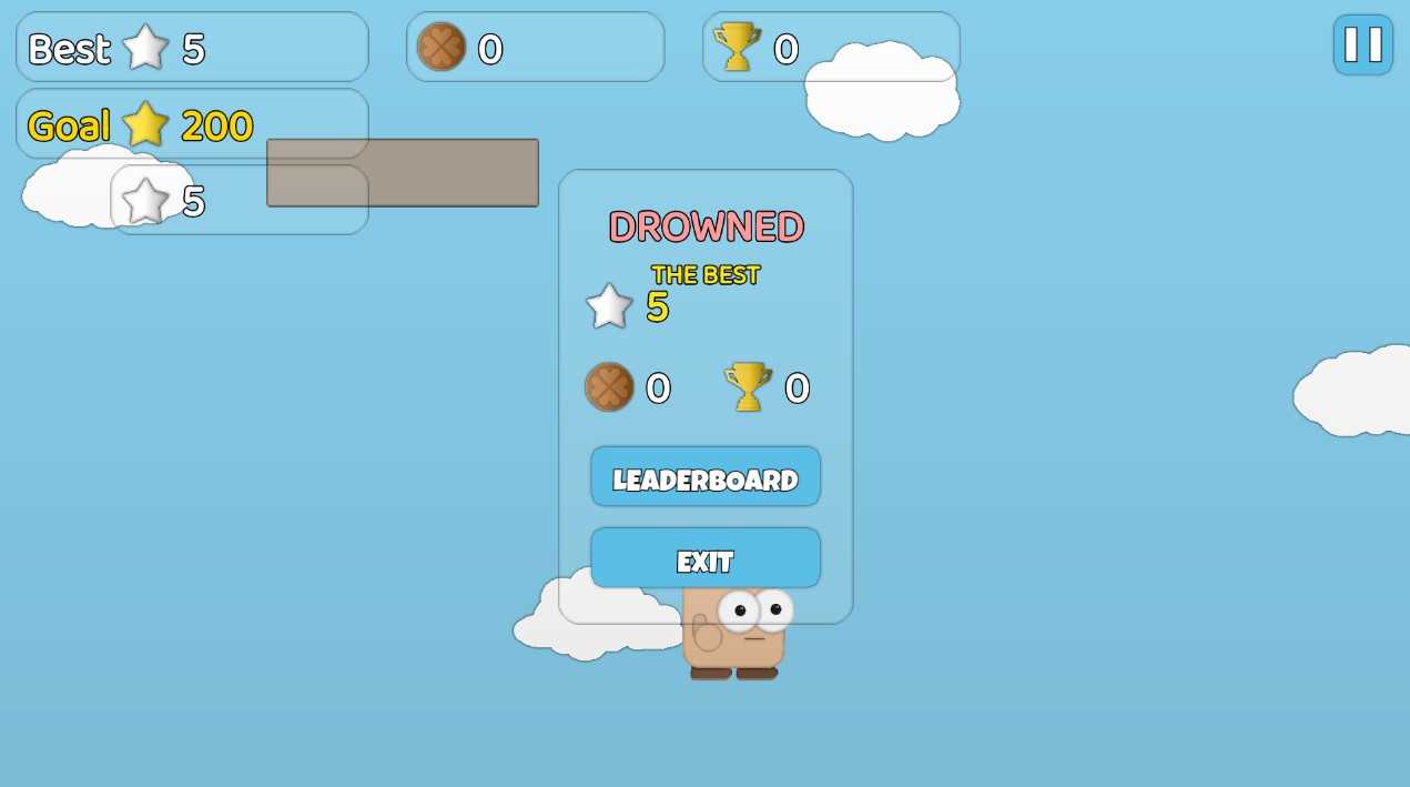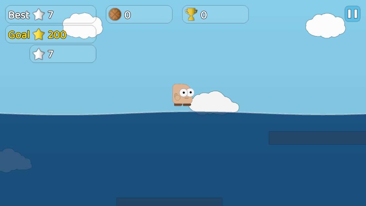 3、河水的位置为不断地长,不断地跳跃到更高的平台,保证这个小人不要被淹。