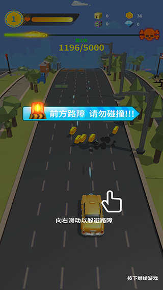 4、左右滑动屏幕可控制赛车方向,遇到障碍物时需及时向右滑动躲避。