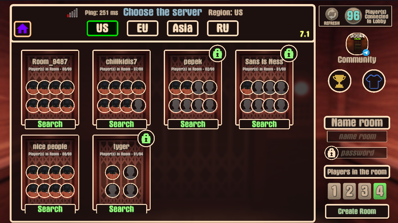 门在线是一款恐怖的解谜游戏,在这款游戏中,玩家需要不断地探索阴森的房间,寻找钥匙来开门,游戏中,玩家会遇到各种各样的谜题,玩家认真的寻找线索,在玩家寻找线索的同时,还需要时刻小心,躲避怪物,加入游戏,一起寻找逃出去的钥匙吧!