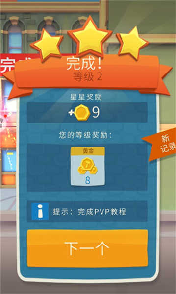 5、顺利到达终点后,系统会判定你获得胜利,此时可以轻松点击下一关”按钮,继续迎接新的挑战。