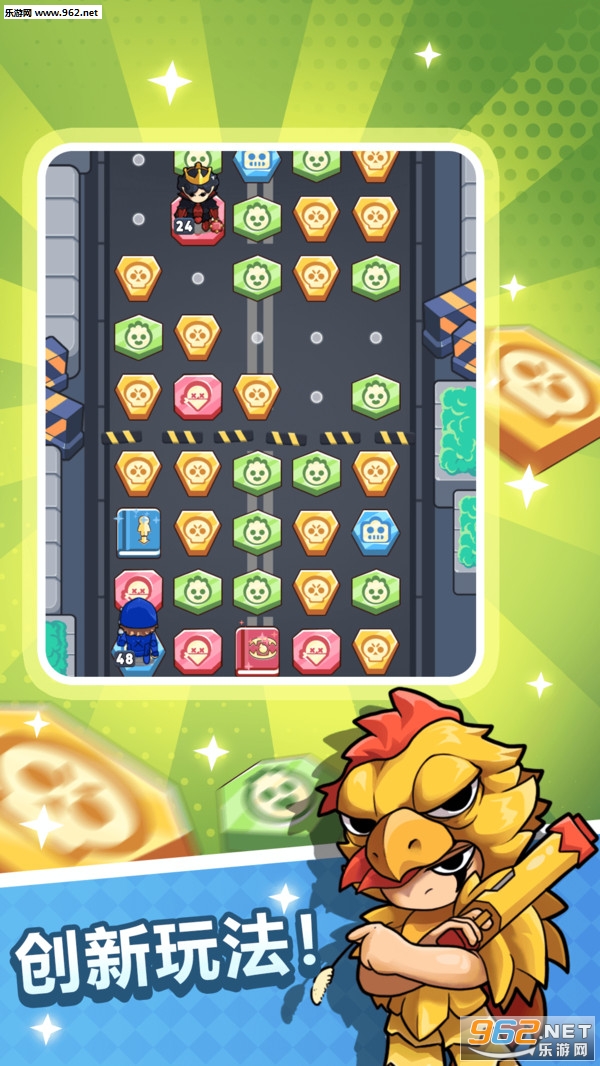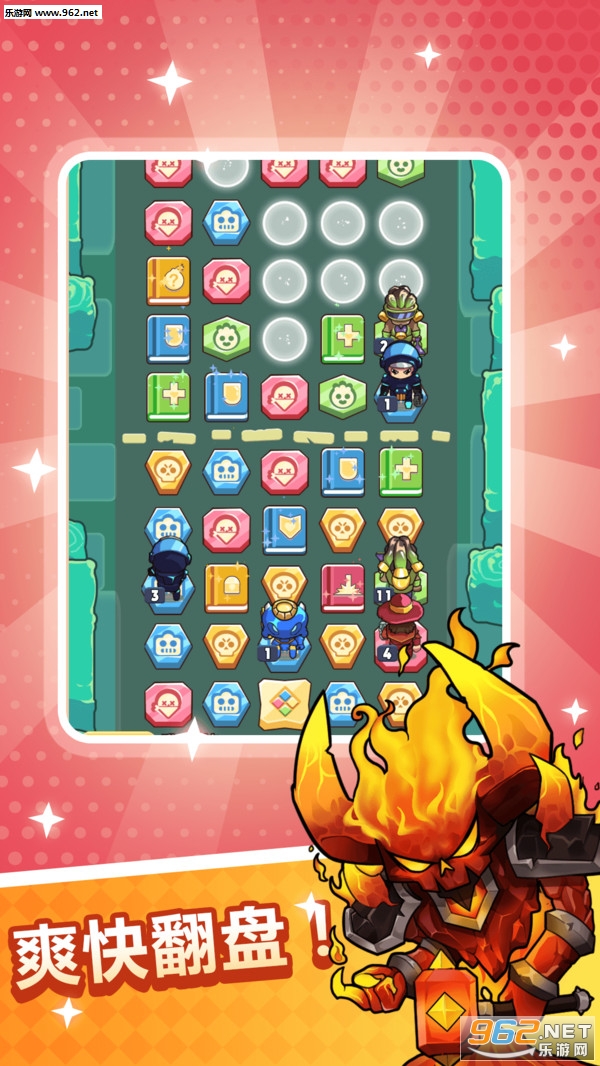 这是一款实时对战的休闲策略游戏,对战双方共用一个方块棋盘,通过指尖消除方块来产生对应的颜色英雄,只要你足够足智多谋便可扭转乾坤,通过消除方块来抢夺对手英雄、技能,以其人之道还治其人之身,并争取最终赢下激烈比赛。
