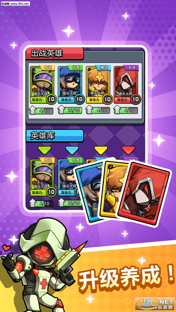 6、消除了宝石即可升级角色,资质越高的英雄初始战斗力越强。