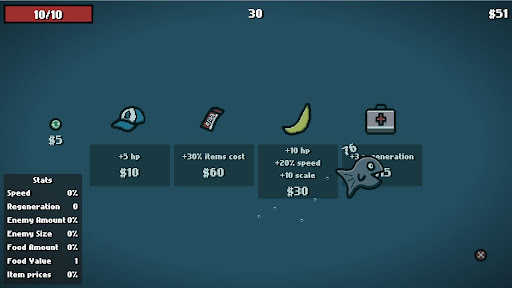 肉鸽鱼吃鱼是一款将Roguelike元素与海洋探险主题融合的游戏,为玩家打造了一种别具一格的游戏享受,在游戏中玩家需要控制一条小鱼,在海洋中存活下去,在危机重重的海洋环境中,玩家必须时刻保持警觉,灵活应对突如其来的各种状况,不断地寻找食物,收集装备,保证自己的生命安全。