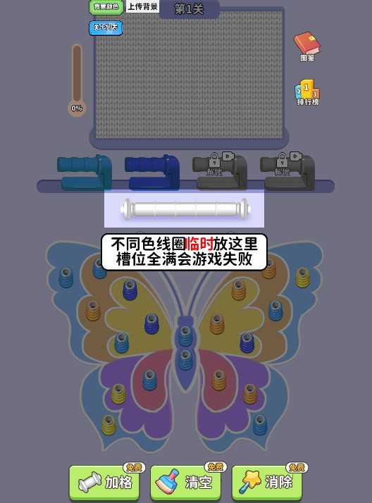 3、不同色线圈临时放这里,槽位满则意味着游戏失败。