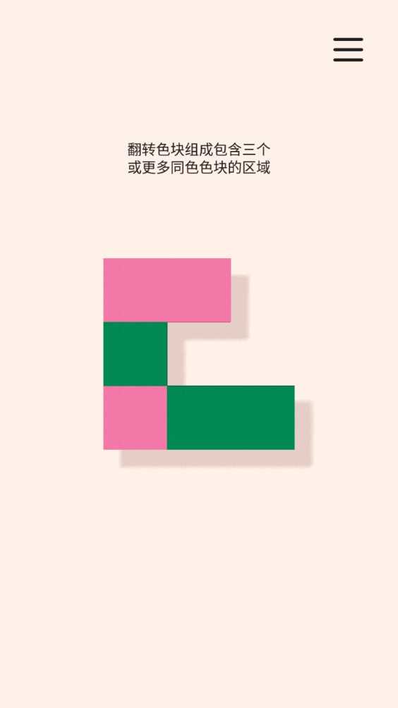 2、翻转色块组成包含三个或更多同色色块的区域。