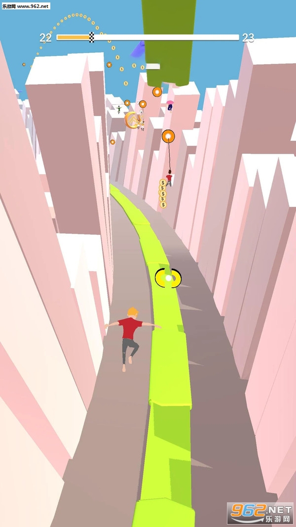 简单的触屏控制,利用绳索向前跳跃,结合一定的挑战技巧,展现自我跳跃能力的魅力,注意规避障碍物,过程中还有大量金币可以收集,可玩性趣味性很高。