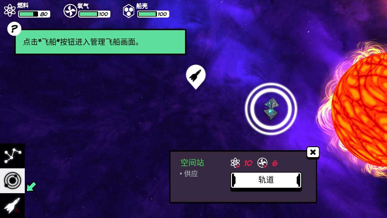 3、点击空间站,再点击"轨道即可进入空间站。