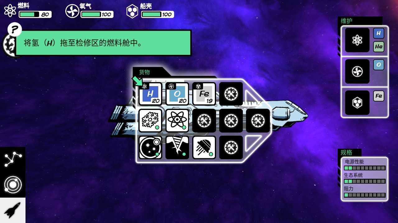 1、玩家需要利用在太空中搜集到的各种资源,小心翼翼地修补玩家那破损的飞船。