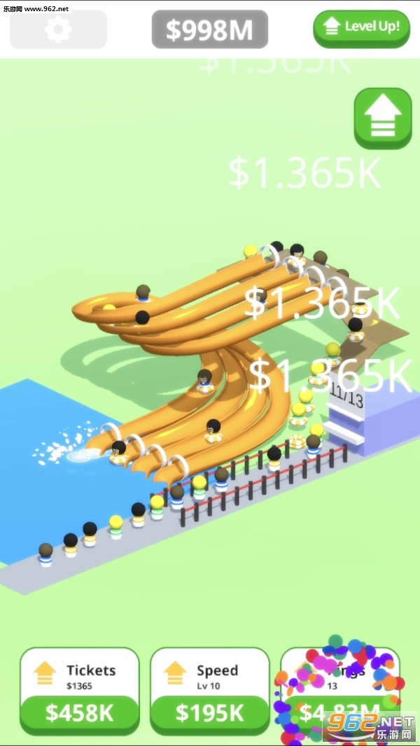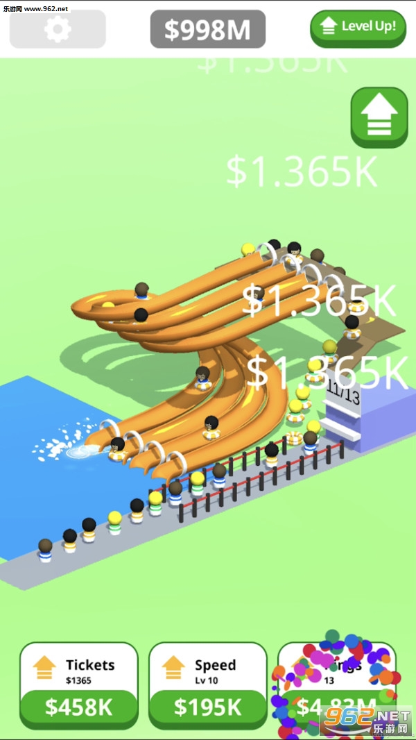《泳池滑道大亨安卓游戏》是一款轻松放置风格设计的建造经营类游戏,玩家可以在这个水上乐园世界建造自己的专属滑滑梯世界,根据自己的灵感来设计各种有趣的水上乐园设施,打造各种好玩的滑滑梯来吸引更多的游客。