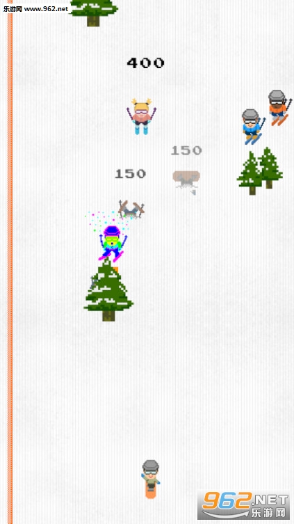 2、在无尽的雪中滑雪会遇到各种障碍,通过障碍滑雪完成任务可以解锁下一个级别;