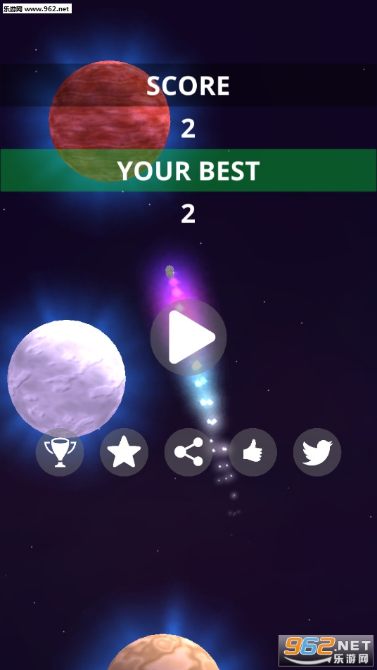 一款非常有趣的休闲街机游戏,游戏中玩家操作的彗星会围绕着各个行星进行移动,游戏的操作简单有趣,推荐给喜欢休闲游戏的玩家。