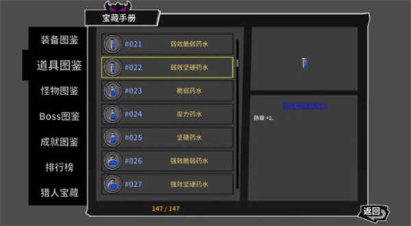蓝色药水的关键词是防御,它会增加/减少你的防御力,也有可能喝到减少防御增加移速的强效脆弱药水。