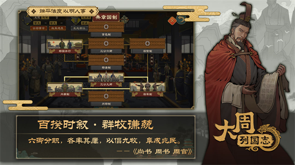 大周列国志官方版是一款非常硬核的国风策略经营手游,时间背景选择了武王伐纣到西汉初年这一段时期,玩家将经历春秋战国、楚汉争霸这两个大战乱时期,多场经典战役等待着玩家参与,海量武将名臣等待着玩家招募,玩家可以挑选任意势力进行扮演,是顺应天命,还是逆天改命,都在玩家的一念之间。
