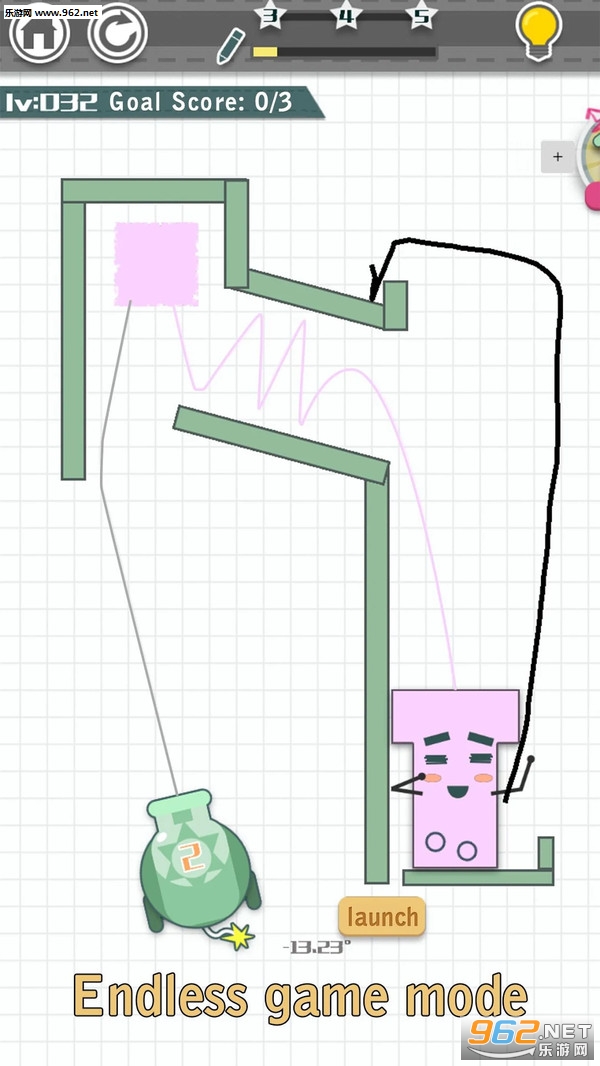 完成关卡并不是只有一个解决方案。你可以想出你自己的解决方案,当你画线的时候,不要害怕打破常规!当你发射球时,仔细瞄准,不同角度的变化。