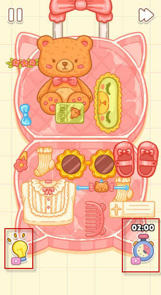 2、在关卡内需要在右下角的时间规定内完成任务,如果不知道如何操作可以点击左下角的灯泡标志获得提示。