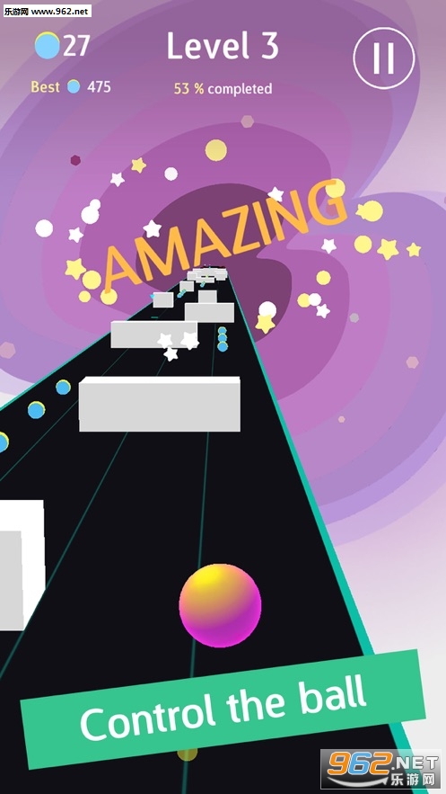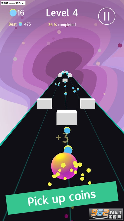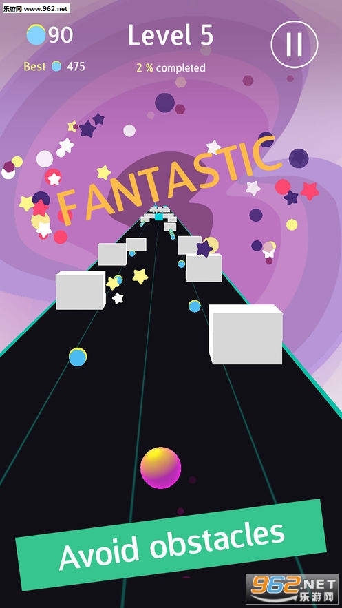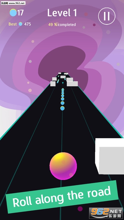 《Groovy Road安卓版》是一款全新的滚球闯关休闲类游戏,游戏采用精致唯美的画面设计,简单的滚球玩法,在这里你需要控制球球左右滚动,躲避障碍和陷阱,想办法变得走得更远,越往后球球的体积越大,游戏越难,合理的利用道具才能走得更远!