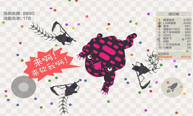 创新性十足的动物吞噬题材敏捷游戏,成为动物界的王者拥有了绝对的权利,才能够用你的操作来实现极限的击杀,从最初始的小虫如何来实现华丽的逆袭,完美的竞技操作来完成震撼的作战,寻找弱小的对手来进行击杀你可以拥有更多的能量,移动不同动物的身躯来躲避对手的吞噬,寻找更多的资源来发挥,才能够获得不断的成长更有可怕的蝎子精和蜈蚣精闪亮登场。