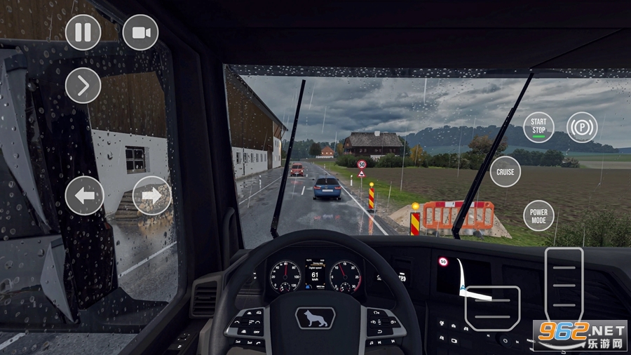 4、进入驾驶模式后,首先需要点击右侧打火按键来启动卡车,将档位挂到D档位上即可起步,点击下方的油门就可以发动汽车了。注意上坡启动,上坡启动,上坡启动, 重要的事情说三遍。