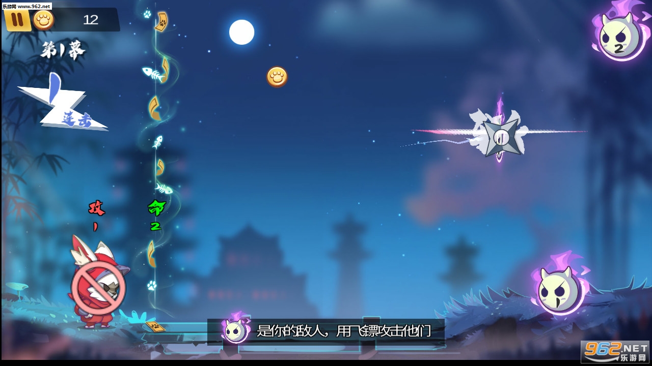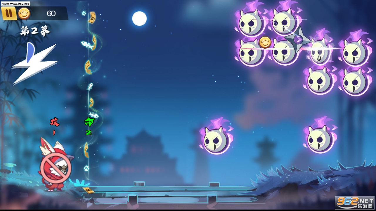 《镖镖忍者猫》是一款卡通风格的休闲闯关游戏,游戏中玩家将操作忍者猫抵御进攻的妖怪,游戏的玩法非常简单,采用了回合制的操作,扔一次飞镖所有的妖怪前进一格,玩家需要算准抛物线,尽可能多的命中妖怪,赶快下载体验吧!