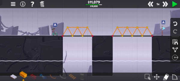 5、车辆正常驾驶过程中桥梁没有倒塌,顺利抵达对岸就挑战成功了。桥梁的造价越低,你的游戏排名就越高。