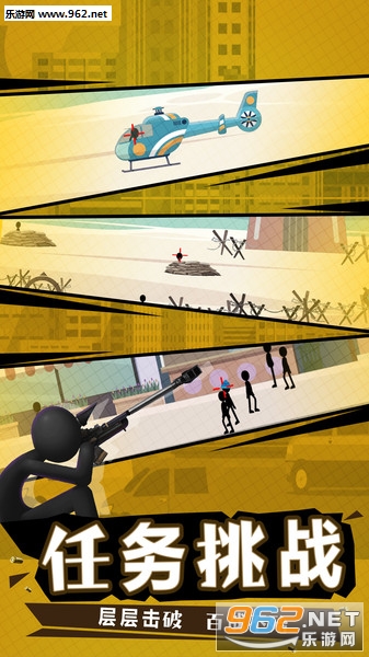 新一代火柴人的狙击战场,3D的画面背景风格设计让场景化也是很客观,多样化的游戏任务挑战难度上也是有的,技术含量也很高哦;
