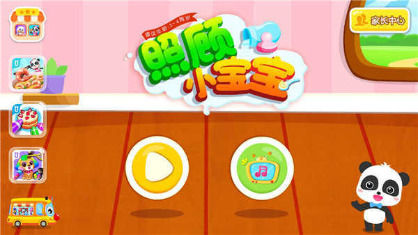2、点击左侧的播放”按钮,进入核心游戏区域,在这里可以哄宝宝入睡、喂奶或逗宝宝开心等。