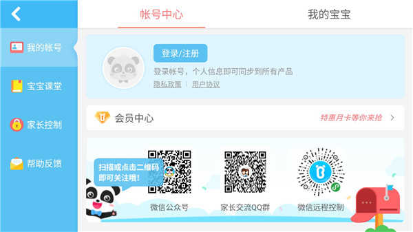 4、进入家长中心”选项,可对宝宝使用设备的时间及内容进行合理管控。