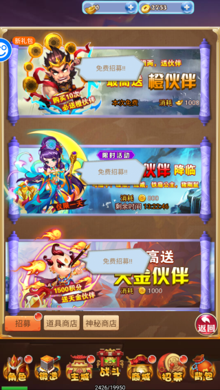 3、开局直接赠送超级礼包码,内含红将套装及橙色伙伴,任意领取。