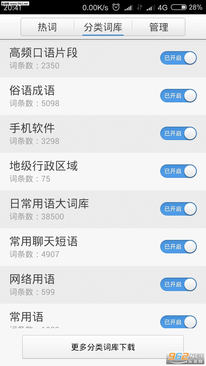有个美中不足之处就是不能下载皮肤,但可以下载主题。分类词库根据需要自行下载。记得关闭更新设置中的更新检测