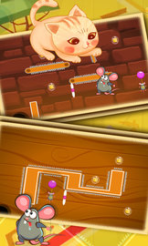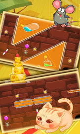 2、精致的手绘卡通风格画面,呆萌的猫咪老鼠,你将帮助老鼠完成抢夺奶酪的任务,各种挑战让你抓破脑袋。