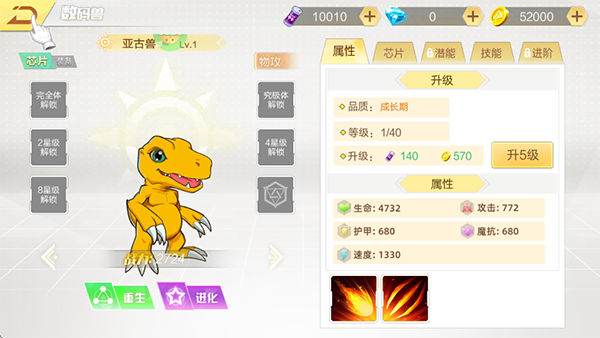 每个数码伙伴都拥有专属的战斗技能,学会如何运用这些技能将极大提升战斗力。通过不断的训练和实战演练,你的伙伴将解锁更多高级技能。同时,合理利用游戏中的辅助道具,也能进一步强化他们的能力。