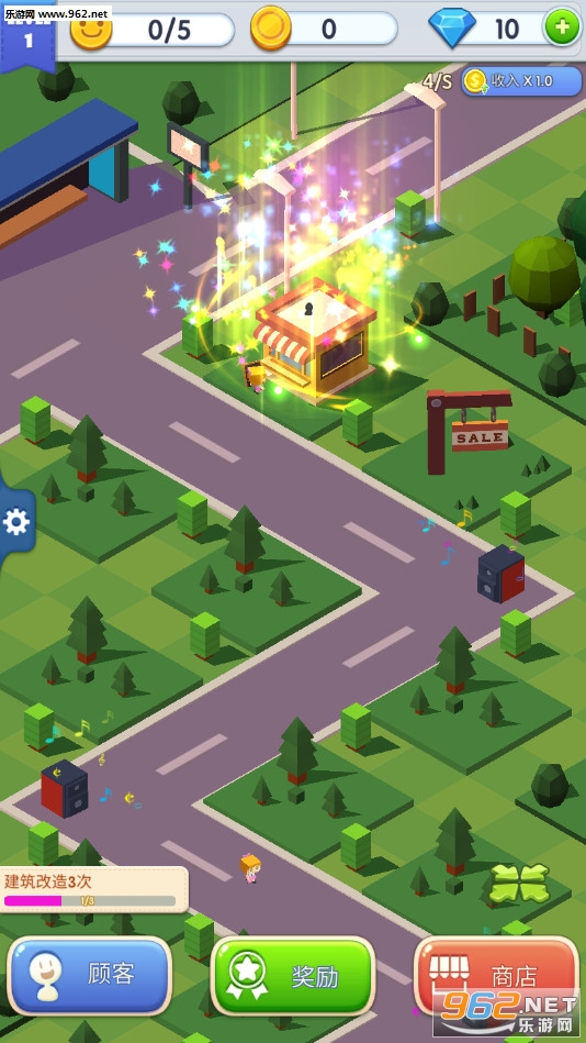 趣味的经营游戏,玩家将一点点的增加自己的店铺数量,可以利用金币升级,提高建造的档次,提高单位时间的收益,喜欢的朋友可以下载试试。