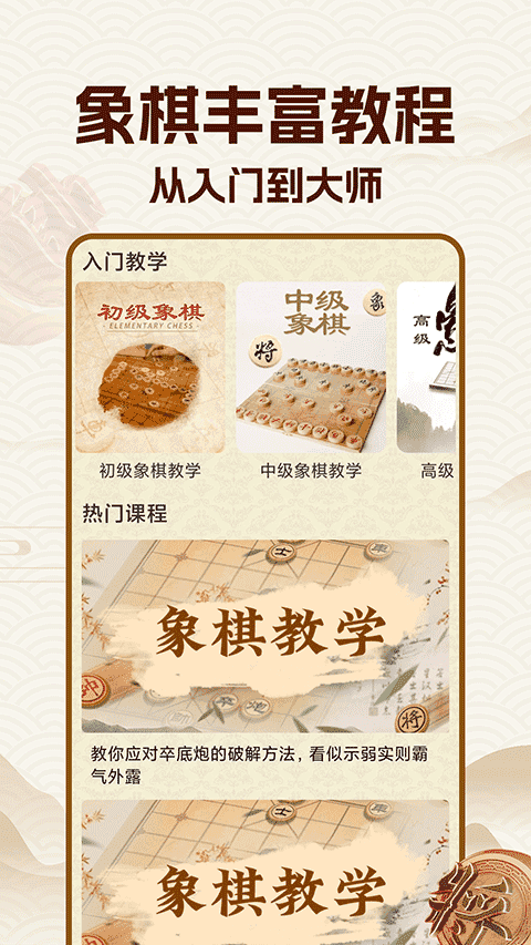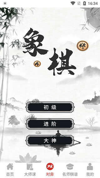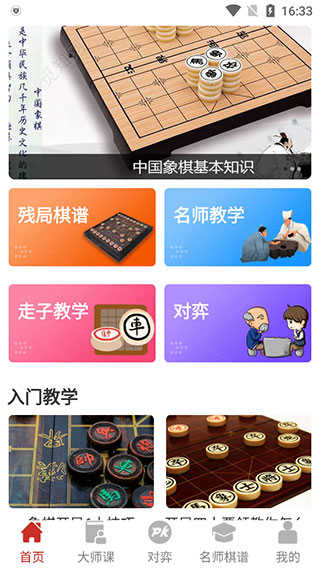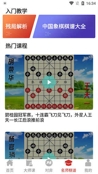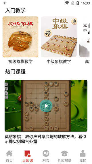 2、点击大师课”选项,进入从入门到进阶的象棋学习模块;