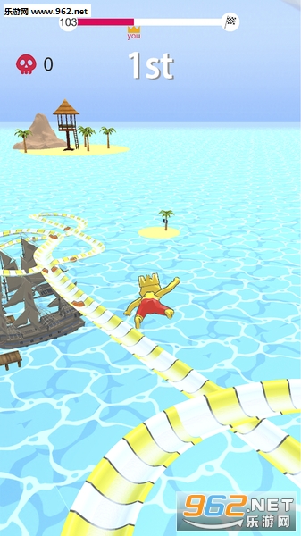 争做第一个到达滑梯终点的人!下滑过程中撞开其他玩家,飞出轨道走捷径,尽情享受飞人般水上乐园以及阳光海滩的乐趣。