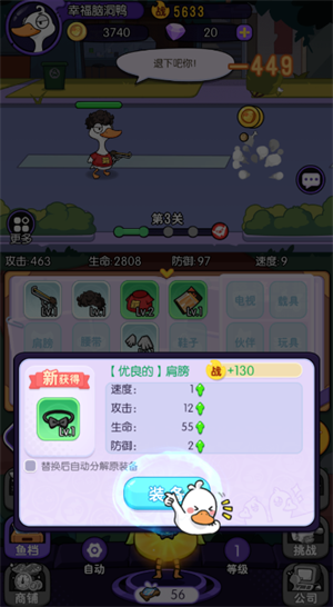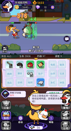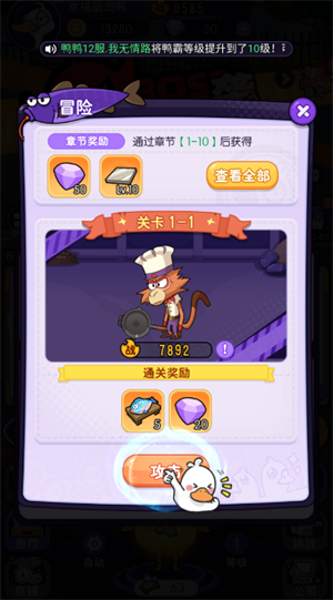 5、武装好自己的鸭鸭后,可以去冒险挑战其它的动物,挑战成功可以获得大量奖励。